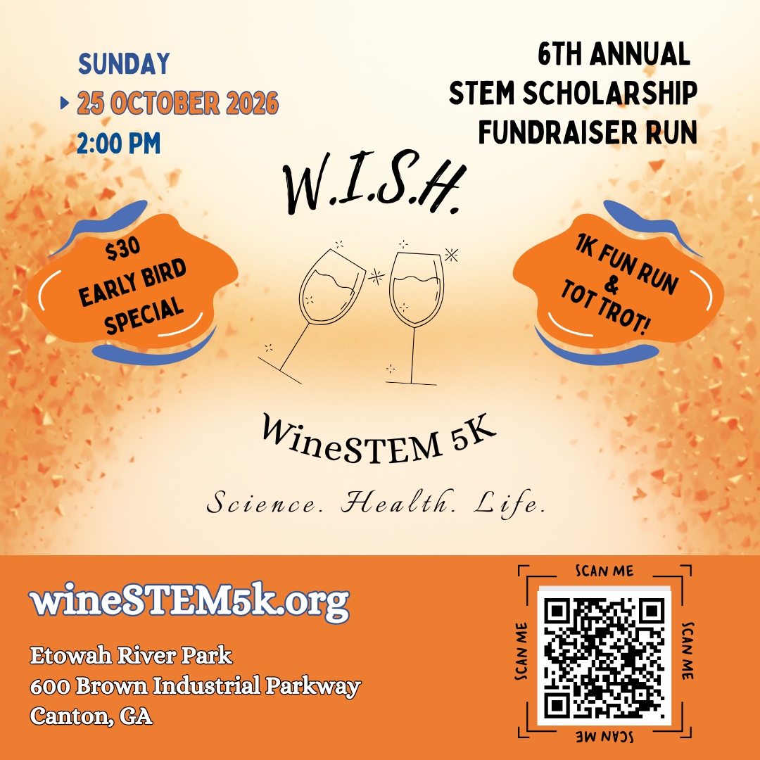 Join us the afternoon (2:00 PM), on 10/25/26 for fun, fundraising, running and Wine to celebrate your accompishment with our annual WineSTEM 5K/1K/and a Tot Trot for ages 5& under (no wine for the underage entrants but plenty of other fluids!