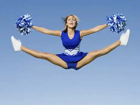 There is no sport that doesn't benefit from warm and flexible muscles, and for cheerleaders, it's crucial. Stretching for increased flexibility can be done every day for about ten minutes and a good warm-up that begins with dynamic movements like jumping jacks and ends with static stretches (no bouncing!) is an absolute must before practicing or performing. Always stretch afterwards, too.