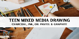 Instructor: Anna Grayson Dive into the world of Mixed Media Drawing, where experimentation and creativity come together! In this hands-on class, students will explore how different drawing materials interact, learning to use charcoal, ink, oil pastels, and graphite in ways that transform the mood, texture, and energy of a piece. Through guided exercises, participants will discover techniques for blending, layering, and combining mediums to create dynamic and expressive artwork. Each student will choose a subject to focus on and experiment with using two different mediums, exploring how switching tools changes the feeling and impact of their drawing. This class encourages curiosity, problem-solving, and artistic play. Students will gain a deeper understanding of how materials work together, develop confidence in their creative decisions, and leave with finished pieces that are uniquely their own. Perfect for artists of all skill levels, this class turns drawing into an adventure of discovery, texture, and color.
