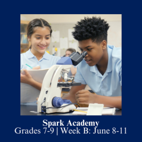 Dates: 06/08/2026 - 06/11/2026 Times: M -TH , 9:00 AM - 3:00 PM Location: Lone Star College-University Park 0515 TX-249 S, Houston, TX 77070 Grades: 7th-9th (current 2025-2026 school year) Price: $399/week* - Lunch is not included. - All participants will need to bring their own lunch, snacks, and a water bottle each day. * A $3.00 administrative processing fee will be applied to your registration upon checkout. *Discounts and refunds cannot be issued for partial attendance in the program. SPARK Academy Week B for Grades 7-9 (current 2024-2025 school year) at Lone Star College is a dynamic 4-day, summer academy crafted by the Rice Office of STEM Engagement in partnership with various districts. This program is designed to ignite young minds and bodies, offering a unique blend of enriching STEAM (Science, Technology, Engineering, Arts, and Mathematics) activities. Students embark on an exciting journey exploring physics, mathematics, computer science, and engineering through hands-on activities in the classroom and in motion. Each day includes immersive STEAM projects and engaging activities, fostering teamwork and collaboration. Led by experienced school district staff, our academies also feature guest speakers and special learning opportunities, ensuring a rich and memorable experience for all participants. Right click here to open a new window and apply for scholarships.