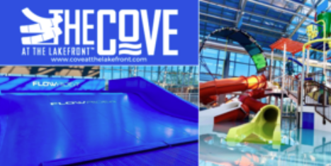 The Cove™ will be open all year long and features something for everyone and all ages! Splash away in the zero-depth splash ground, catch a wave on our FlowRider® Double or take a relaxing ride down our lazy river. You can stay and play all day! You can even host your next birthday party, family gathering, or corporate event with us!