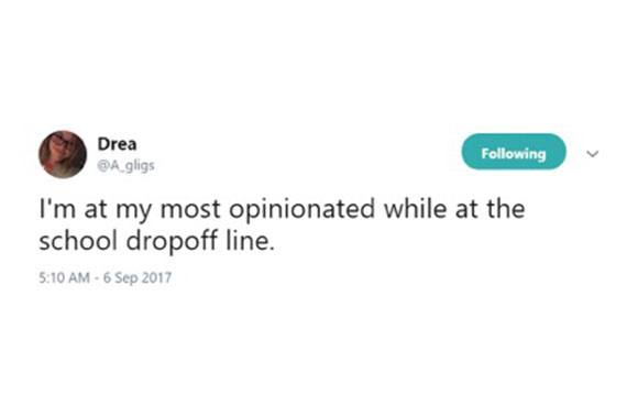 Full dance moves behind the wheel for mornings when the kids were extra sassy.