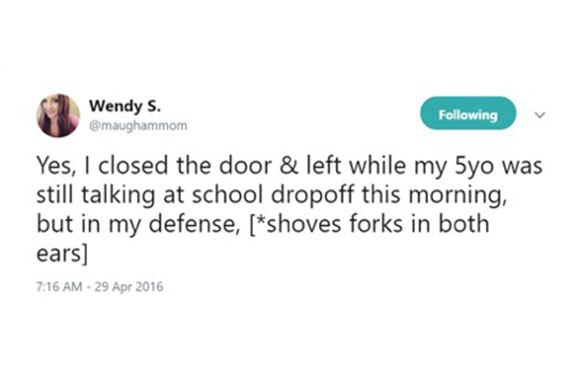 Kids never talk as much as when you're rushing out the door in the morning.