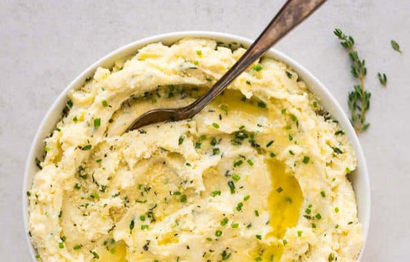 These parmesan- and herb-infused mashed potatoes are creamy, smooth and easy with this recipe that uses Greek yogurt to keep them light and fluffy.