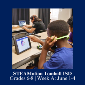 Dates: 06/01/2026 - 06/04/2026 Times: M -TH , 9:00 AM - 3:00 PM Location: Tomball ISD Location- TBA Grade: 6th-8th (current 2025-2026 school year) Price: $449/week* - Lunch is not included. - Student lunch accounts at Tomball ISD may be used to purchase a daily lunch for STEAMotion at Tomball ISD cafeterias. - If not using a student lunch account, participants at this location will need to bring their own lunch daily. - All participants will need to bring their own snacks and a water bottle each day. * A $3.00 administrative processing fee will be applied to your registration upon checkout. *Discounts and refunds cannot be issued for partial attendance in the program. STEAMotion Tomball Week A, Grades 6-8 (current 2025-2026 school year) at Tomball ISD is a dynamic 4-day, summer academy crafted by the Rice Office of STEM Engagement in partnership with various districts. This program is designed to ignite young minds and bodies, offering a unique blend of enriching STEAM (Science, Technology, Engineering, Arts, and Mathematics) activities. Students embark on an exciting journey exploring physics, mathematics, computer science, and engineering through hands-on activities in the classroom and in motion. Each day includes immersive STEAM projects and engaging activities, fostering teamwork and collaboration. Led by experienced school district staff, our academies also feature guest speakers and special learning opportunities, ensuring a rich and memorable experience for all participants. Right click here to open a new window and apply for scholarships.