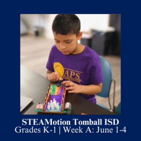 Dates: 06/01/2026 - 06/04/2026 Times: M -TH , 9:00 AM - 3:00 PM Location: Tomball ISD Location- TBA Grades: K - 1st (current 2025-2026 school year) Price: $449/week* - Lunch is not included. - Student lunch accounts at Tomball ISD may be used to purchase a daily lunch for STEAMotion at a Tomball ISD cafeteria. - If not using a student lunch account, participants at this location will need to bring their own lunch daily. - All participants will need to bring their own snacks and a water bottle each day. * A $3.00 administrative processing fee will be applied to your registration upon checkout. *Discounts and refunds cannot be issued for partial attendance in the program. STEAMotion Tomball Week A, Grades K-1 (current 2025-2026 school year) at Tomball ISD is a dynamic 4-day, summer academy crafted by the Rice Office of STEM Engagement in partnership with various districts. This program is designed to ignite young minds and bodies, offering a unique blend of enriching STEAM (Science, Technology, Engineering, Arts, and Mathematics) activities. Students embark on an exciting journey exploring physics, mathematics, computer science, and engineering through hands-on activities in the classroom and in motion. Each day includes immersive STEAM projects and engaging activities, fostering teamwork and collaboration. Led by experienced school district staff, our academies also feature guest speakers and special learning opportunities, ensuring a rich and memorable experience for all participants. Right click here to open a new window and apply for scholarships.
